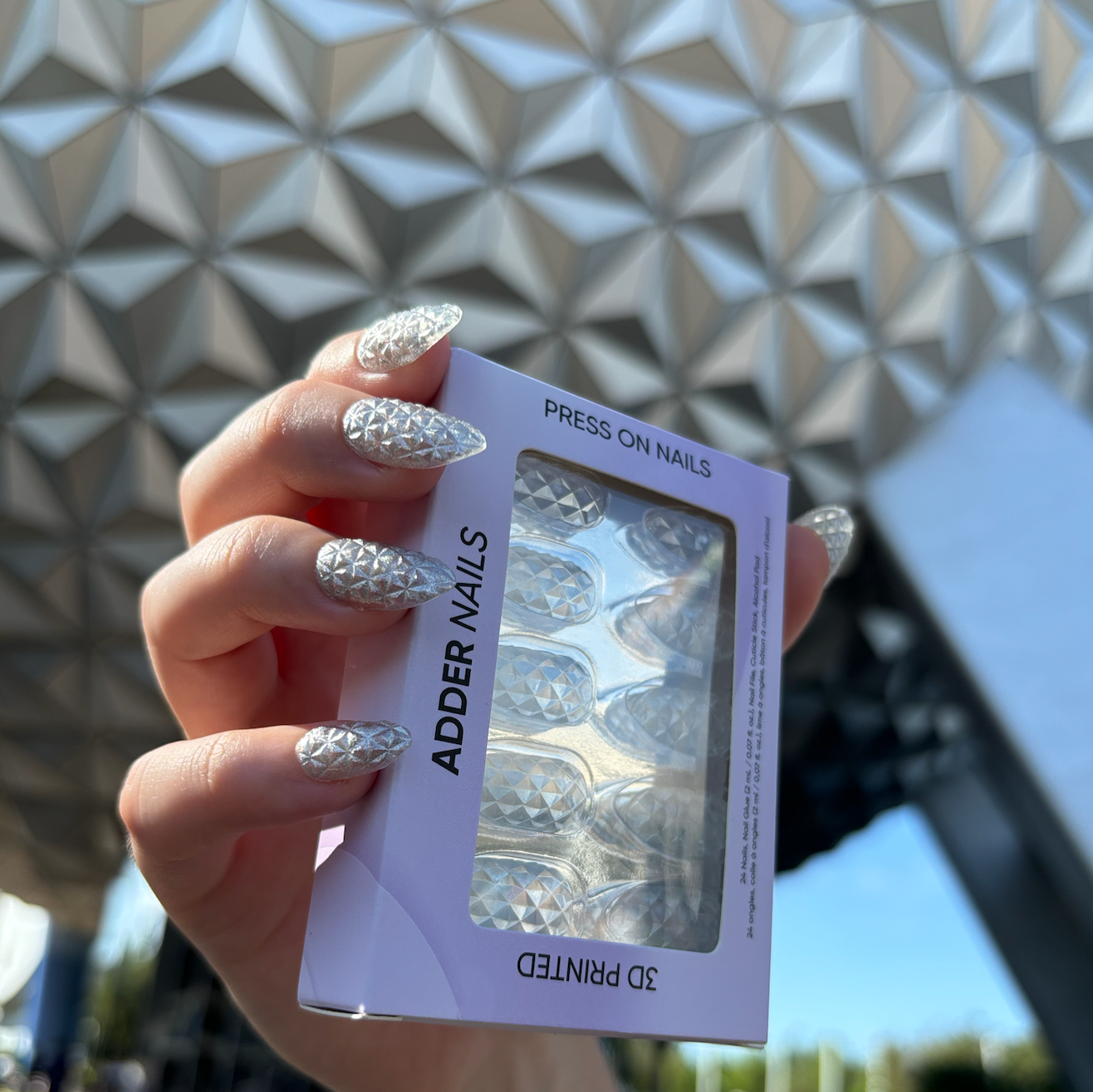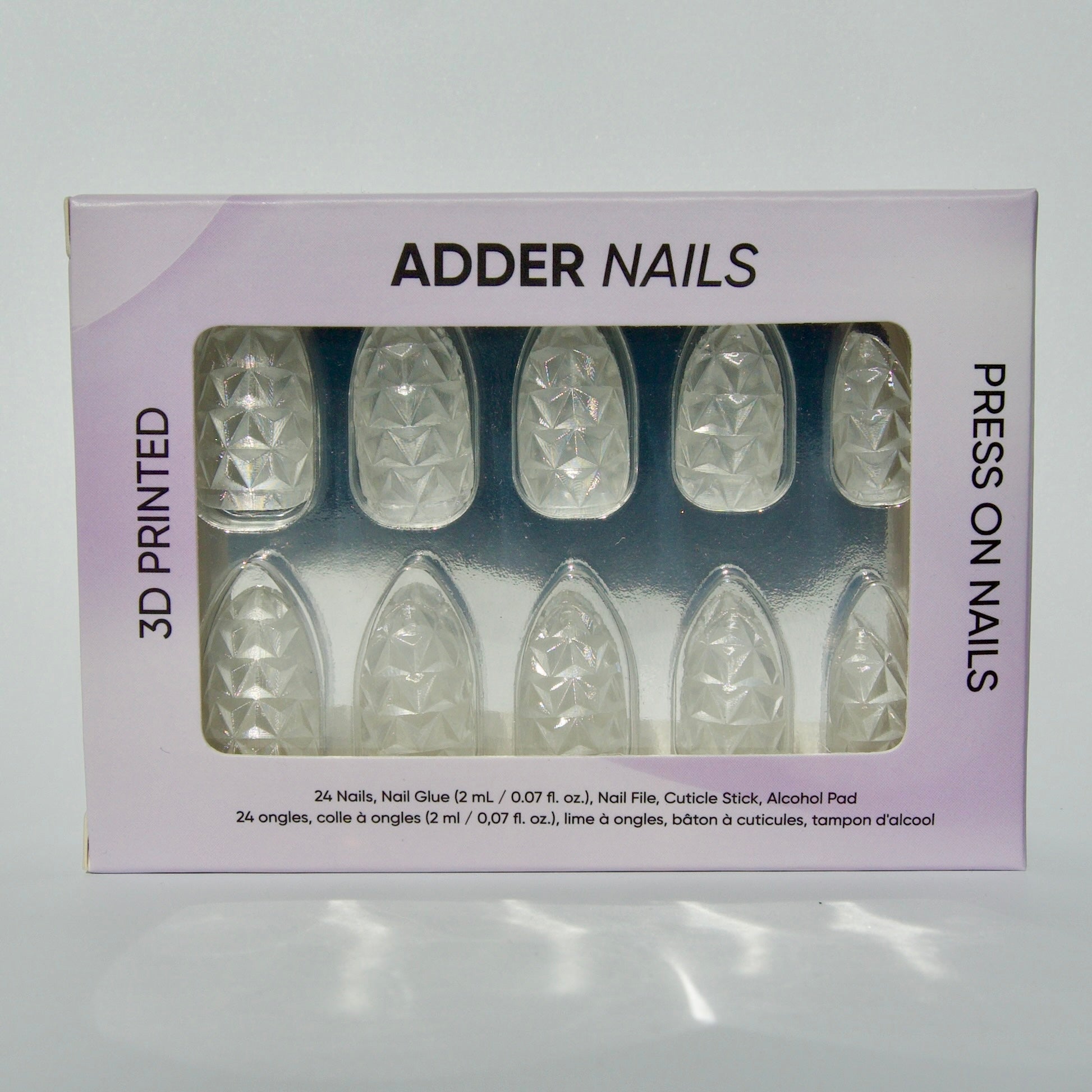 Each nail boasts a stunning array of raised facets, creating a unique texture that catches the light from every angle, delivering a look that’s both sophisticated and bold.