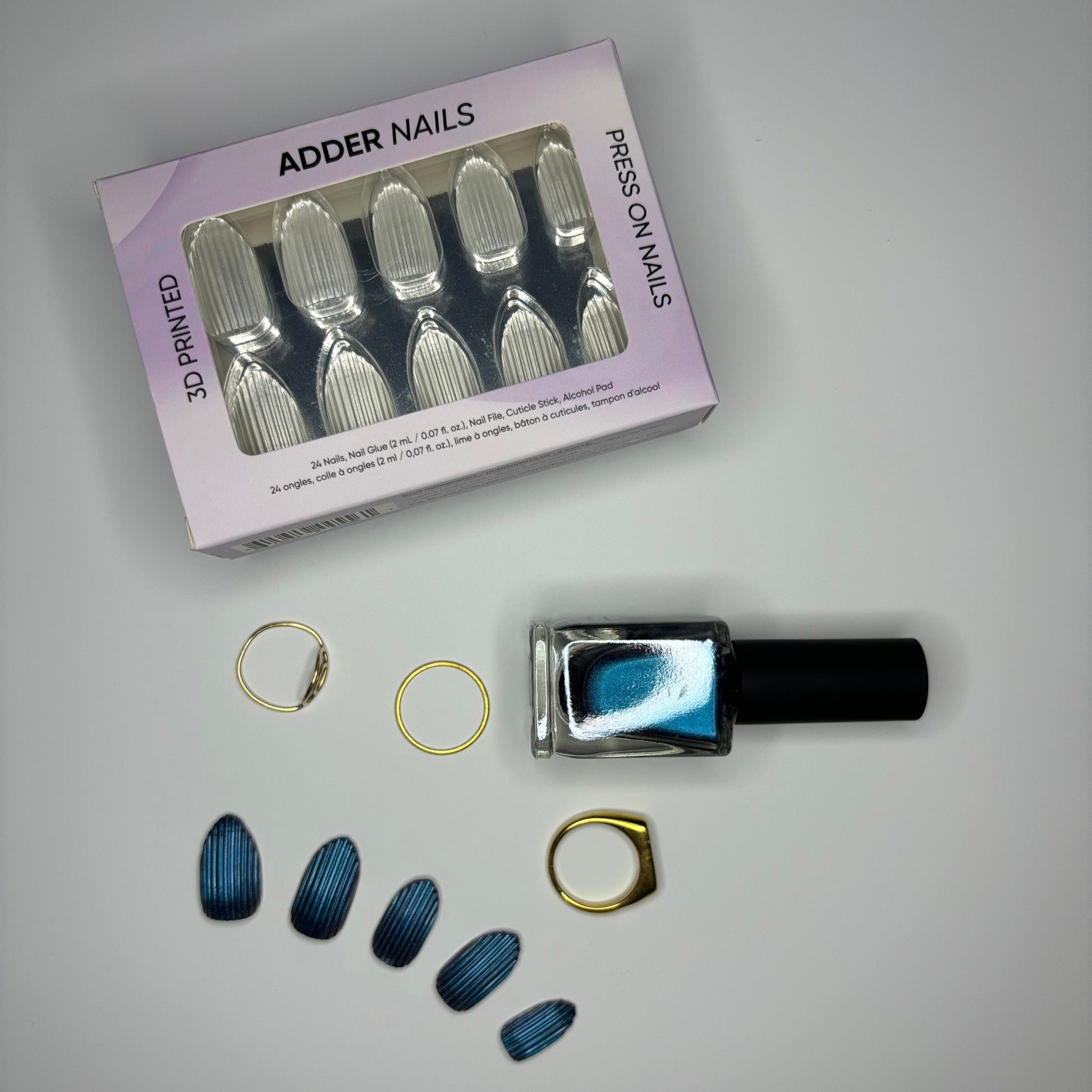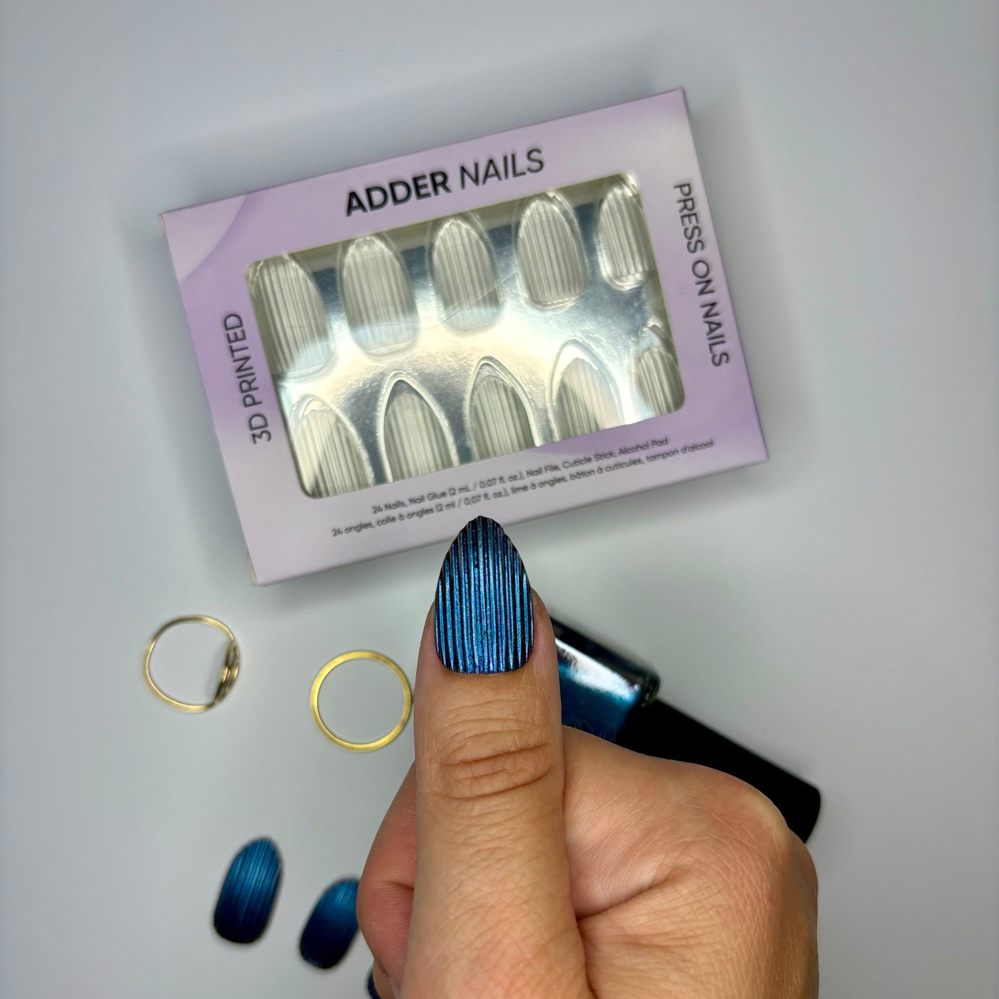Introducing Highline, the ultimate set of 3D-printed press-on nails that redefine sophistication. Each nail features striking extruded vertical lines, meticulously designed for flawless symmetry and a modern aesthetic.
